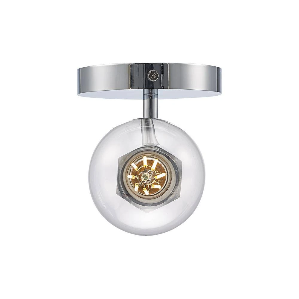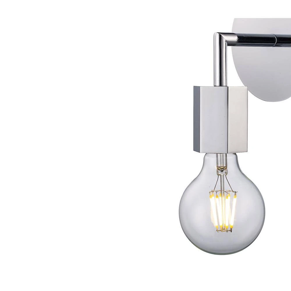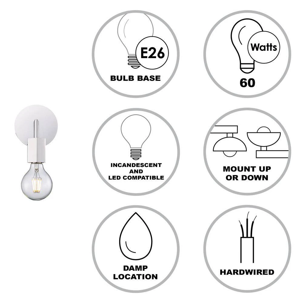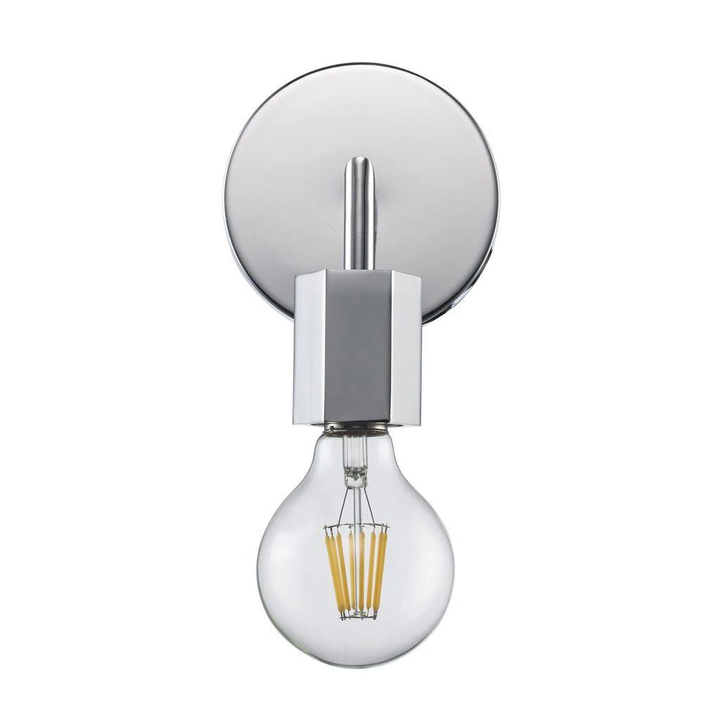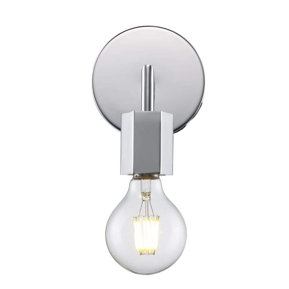 The industrial vanity light collection from Bel Air Lighting exhibits timeless wall pieces with vintage appeal, suitable for use in a variety of bathroom and powder rooms decor styles from modern to transitional. Each piece in the collection features a shadeless design, allowing the light from the bulbs to shine brightly and without shadows. The single light wall sconce comes in a metallic polished chrome finish to match with existing bathroom hardware, and measures 4.75 inches wide. The overall design of the piece is clean and classic, with a bit of a minimalist edge. The wall sconce can be mounted with the bulb facing upwards or downwards for a customizable look. This fixture looks great on its own, or when mounted in a pair on either side of a vanity sink or mirror.