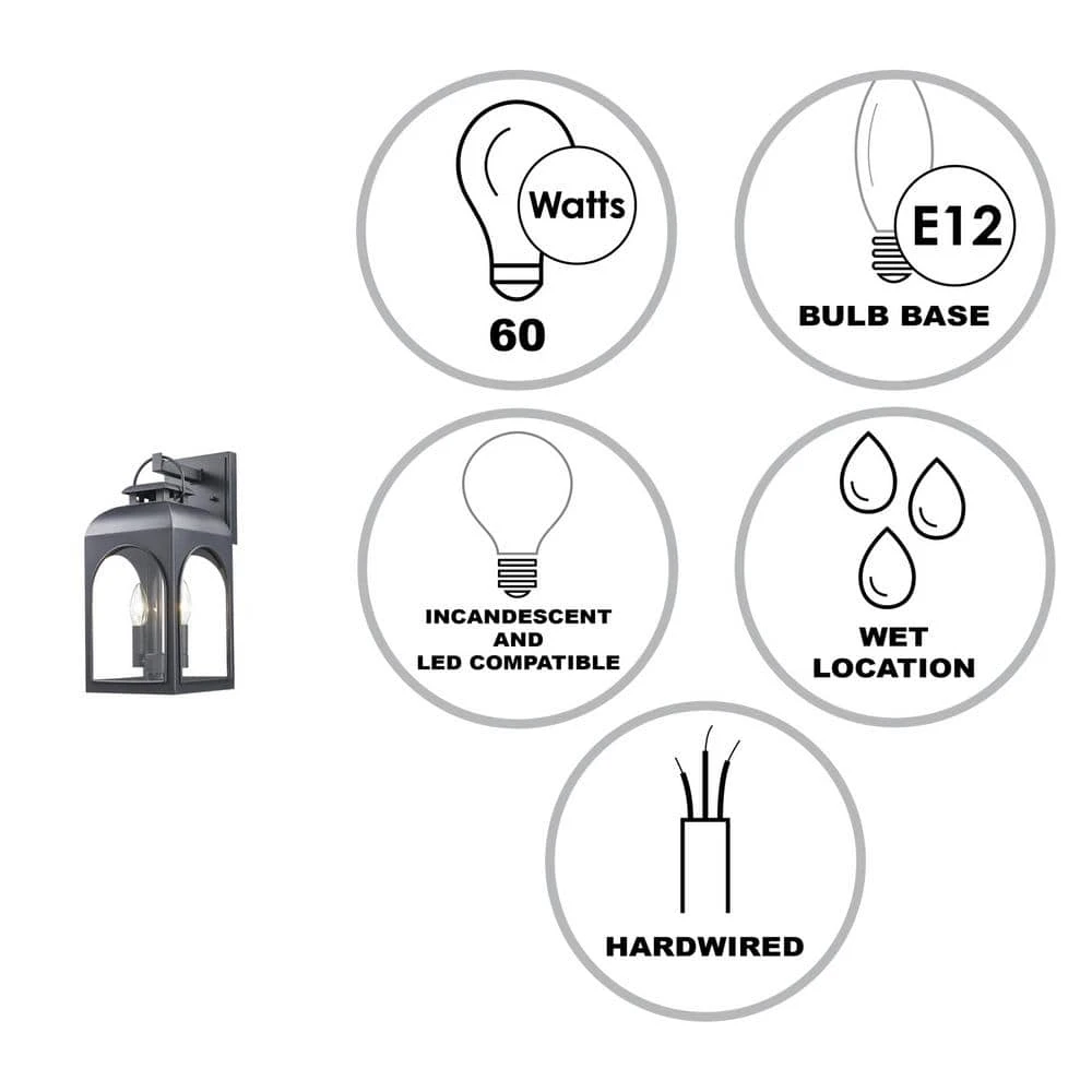 - Uses (2) medium E12 base 60-Watt bulbs, not included