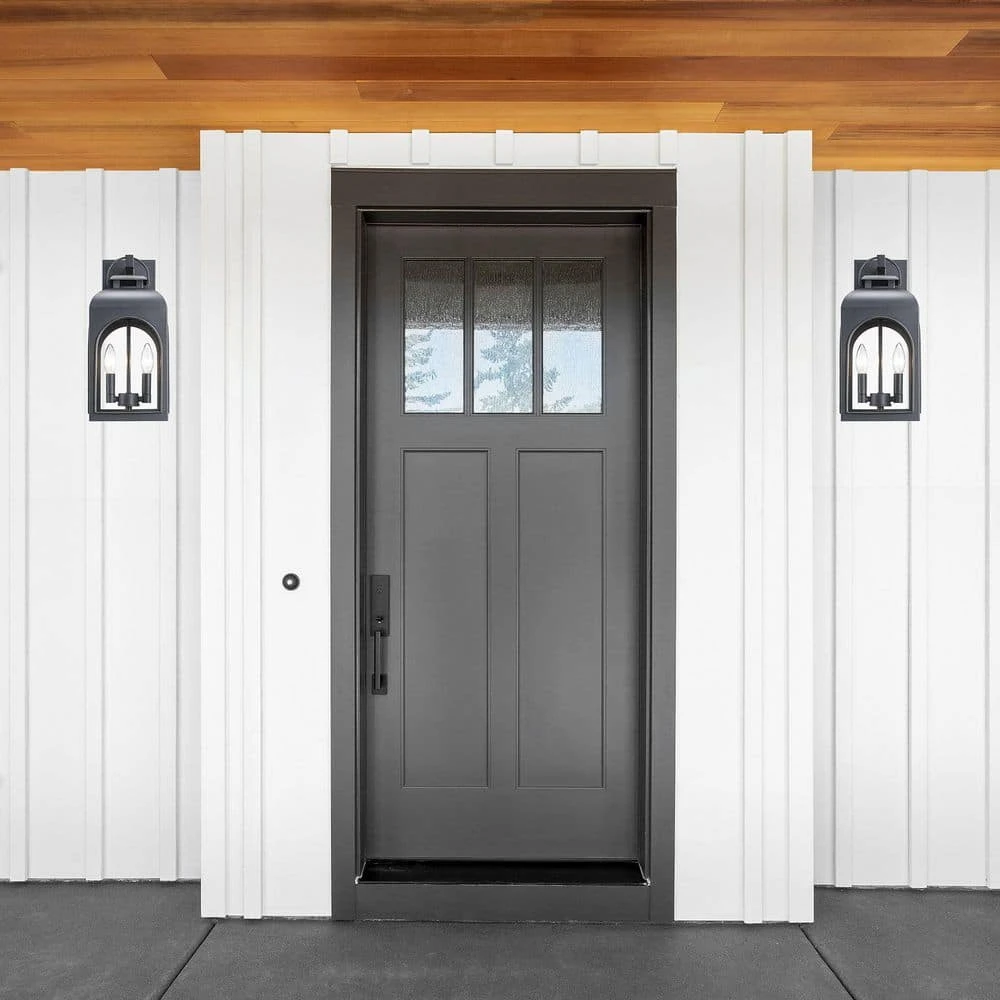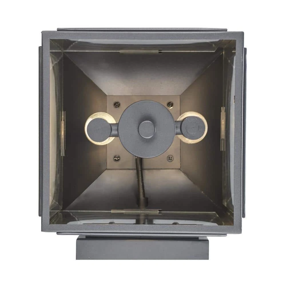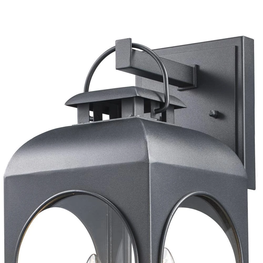 The Presence Collection from Bel Air exhibits classic craftsman-inspired outdoor lights that are ideal for adding area lighting to a variety of exterior living spaces. The Presence large wall light is inspired by traditional lantern lighting and features a metal frame that ‘hangs’ on a decorative hooked arm, attaching it to the wall plate. The fixture is enclosed on 4 sides of the rectangular metal frame by clear glass windows, protecting the light bulbs inside from harsh weather conditions. The bottom of the fixture remains open to allow easy bulb access, and for uninterrupted illumination in the space below. The sconce is finished in black to coordinate with a variety of exterior home styles and with existing black-finished fixtures and hardware. Install the Presence wall light on either side of a garage door to light up your home’s driveway, near porch entryways and access points, or along outdoor pathways and steps.