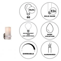 Jasper 1-Light Brushed Nickel Wall Sconce Light Fixture with Frosted Glass Shade by Bel Air Lighting