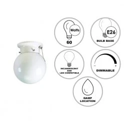 Dash 6 in. 1-Light White Flush Mount with Opal Glass and Pull Chain by Bel Air Lighting