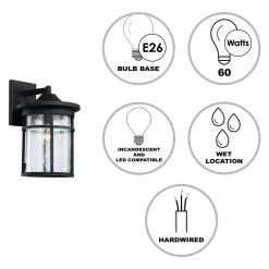 Avalon 11 in. 1-Light Rust Outdoor Wall Light Sconce Lantern with Crackled Glass by Bel Air Lighting