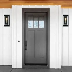 Alexander 1-Light Black Outdoor Wall Light Coach Lantern with Frosted Glass by Bel Air Lighting