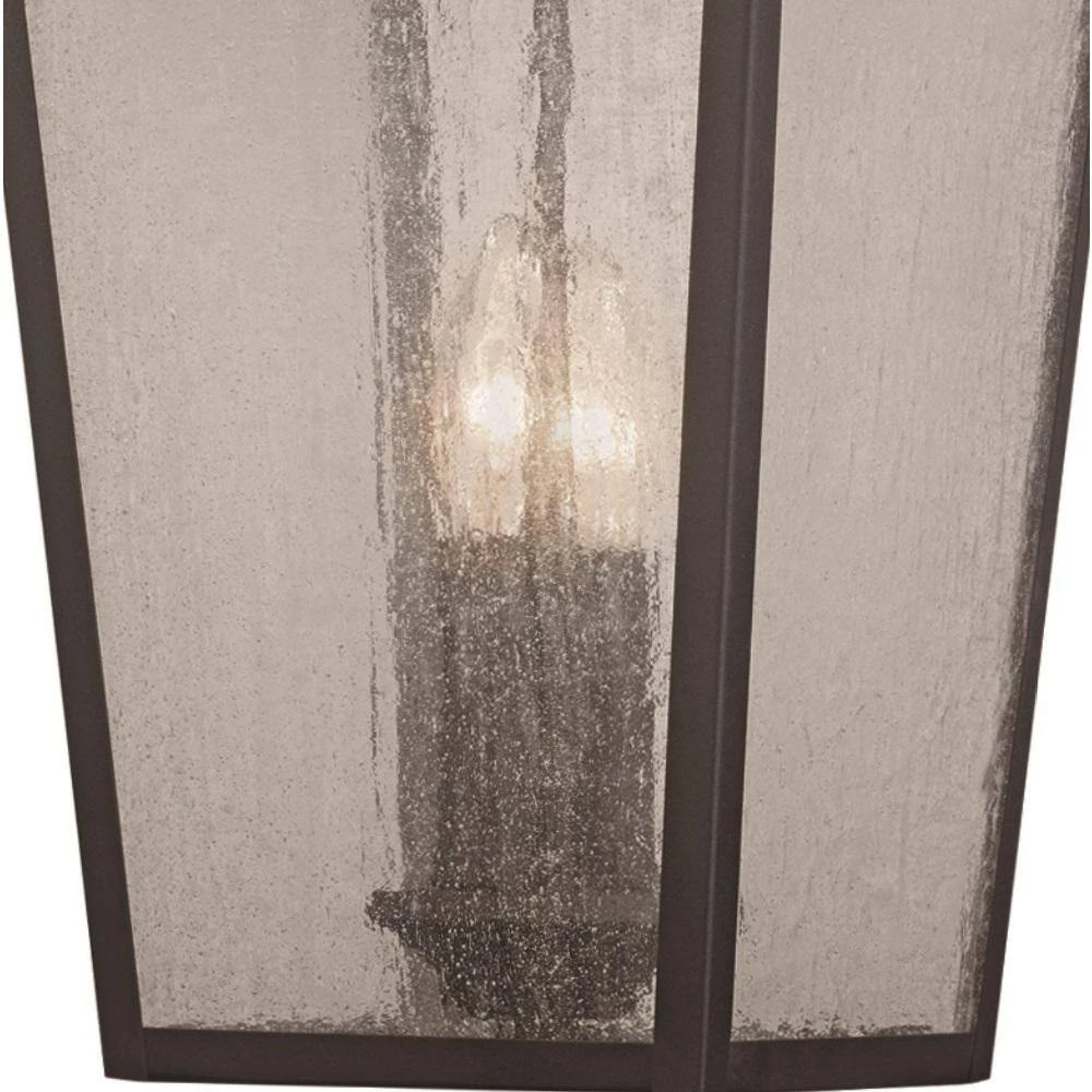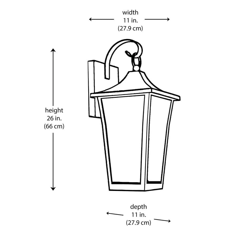 The craftsman outdoor lighting collection from Bel Air exhibits lantern-inspired fixtures designed to coordinate with a variety of home types from traditional to farmhouse. The 11-inch outdoor wall light is the largest in the collection and features four seeded glass windows, a sloped roof, and a tapered metal body that appears to “hang” from decorative hooked hardware while remaining firmly affixed to the wall plate. The lantern body is open at the bottom to provide easy access to the bulbs inside, as well as directional lighting in the space below. Mount this wall sconce along driveways, in porch entryways, or near outdoor pathways and steps.