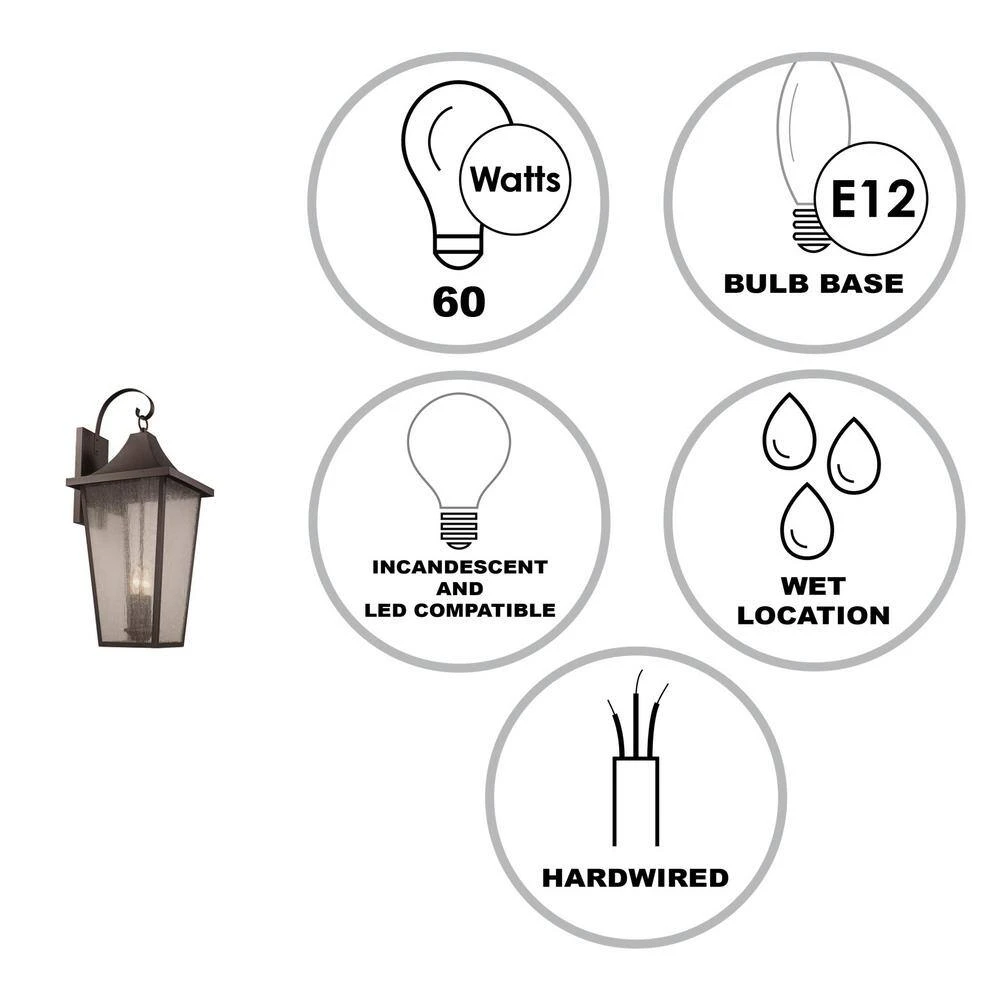 - Uses 2 candelabra E12 base 60-Watt bulb, not included