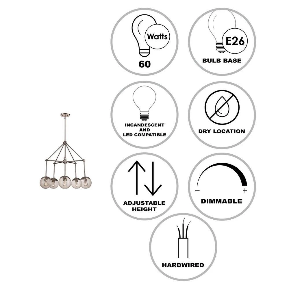 - Uses (5) medium E26 base 60-watt bulbs, not included