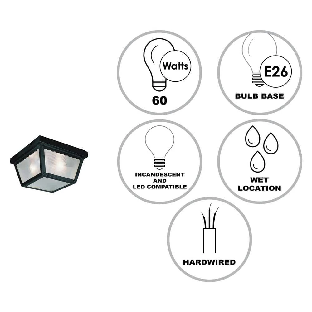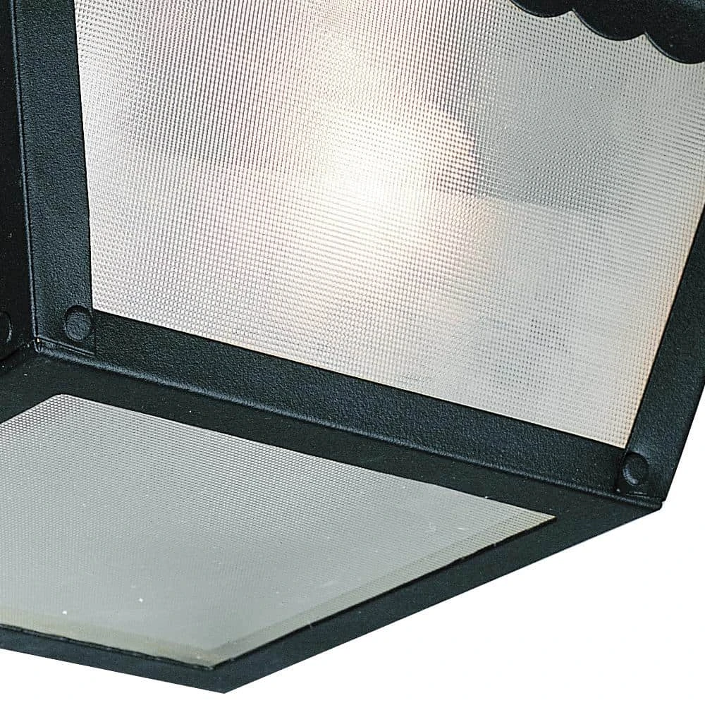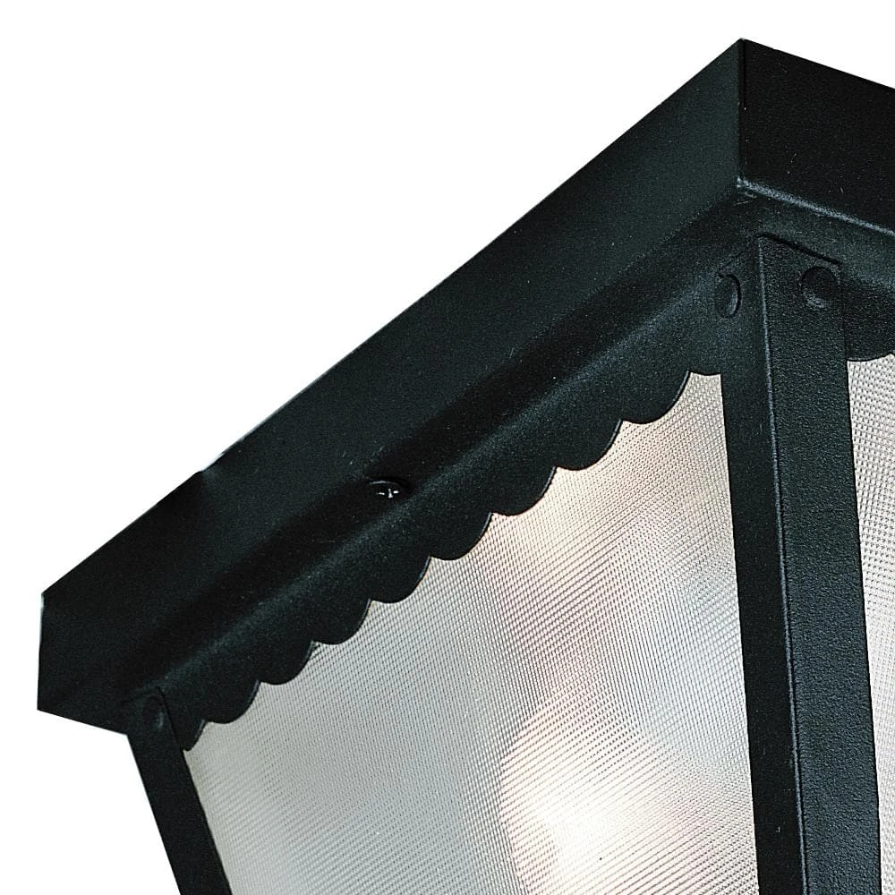 The Samantha Collection of outdoor lights offers low-profile, transitional style flush mount lighting suitable for a wide range of home types and exterior applications. The Samantha single light ceiling fixture is the smallest in the collection, measuring only 7.75 inches square, offering maximum functionality in a compact package. The decorative scalloped trim and frosted glass hobnail textured glass sides add a unique appeal to the piece while fully enclosing the bulb inside to protect it from breakage in harsh weather. The sleek black finish is weather resistant, and will coordinate seamlessly with your existing outdoor lights and decor. This outdoor flush mount is ideal for use in porch entryways, garages, backyard patio spaces, and more.