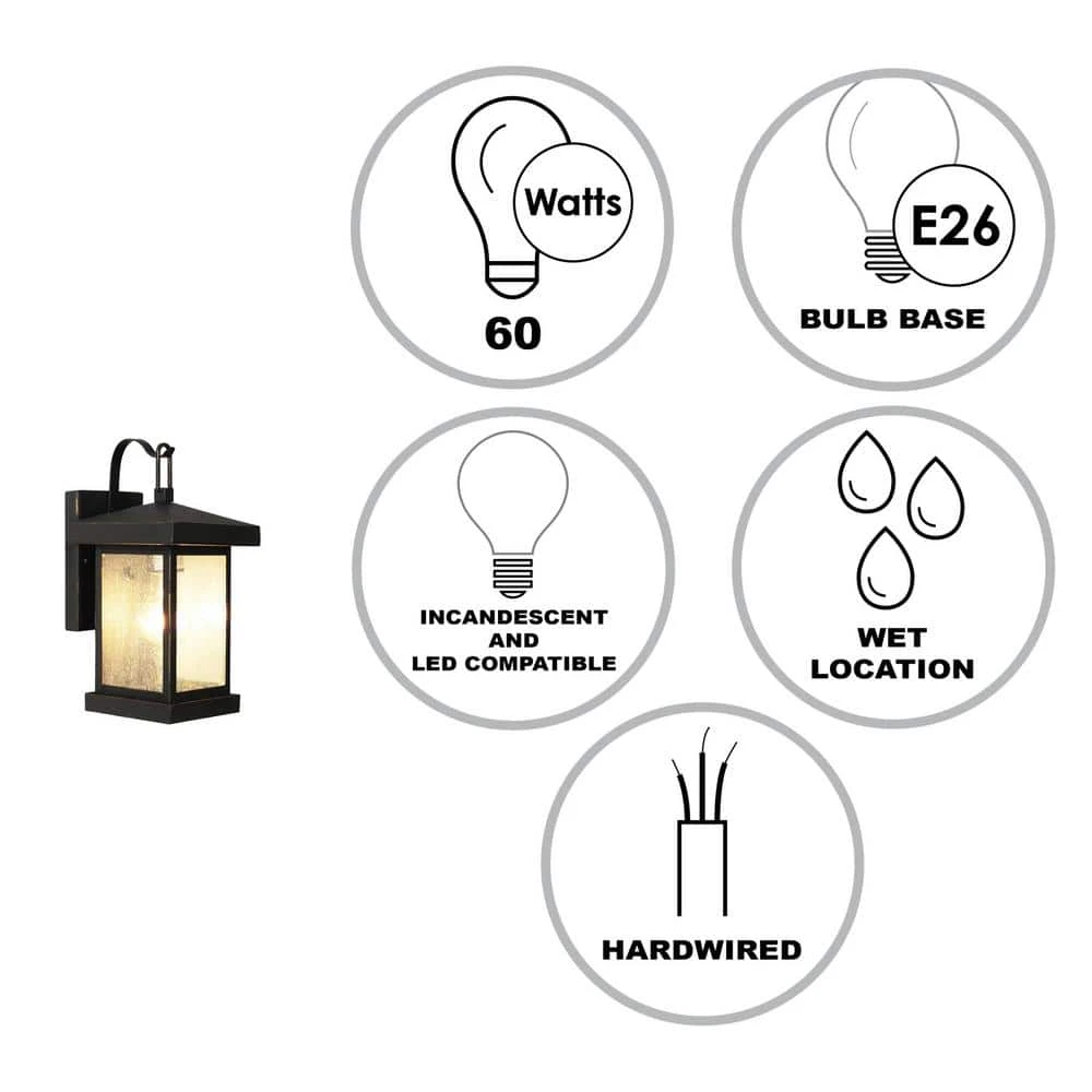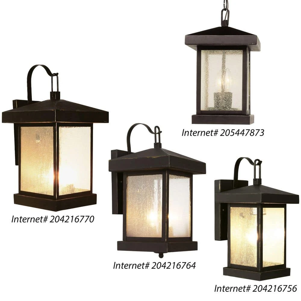 The Santa Cruz Collection from Bel Air exhibits rustic styled exterior lights with rich, weathered bronze finishes and decorative seeded glass sides. Each piece in the Santa Cruz Collection is wet rated, and suitable for use in any outdoor covered or uncovered location. The single light wall sconce is the smallest in the collection, offering abundant light for smaller to medium sized spaces. The lantern style body appears to “hang” from a decorative metal scroll arm, a craftsman detail present throughout the collection, while remaining firmly affixed to the matching weathered bronze wall plate to hold up in harsh weather conditions. Mount this wall lantern on either side of a garage to light your home’s driveway, along an exterior walkway, or near entrances to provide a warm and inviting illumination.
