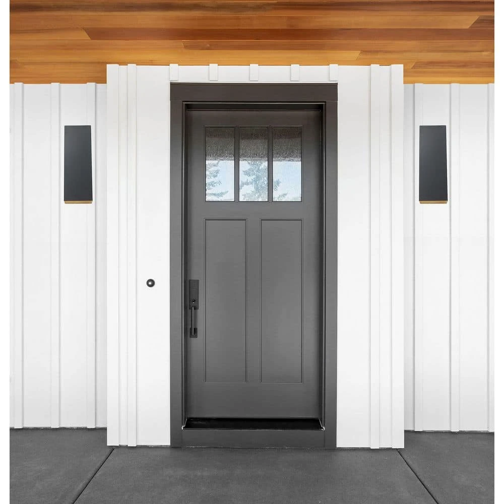 The Sidewell Collection from Bel Air features modern industrial outdoor lighting, designed to complement a variety of home styles from farmhouse to contemporary. The Sidewell large wall light stands 14 in. tall and houses a single light bulb inside. The rectangular metal shade is open at the bottom to provide easy access to the bulb inside, as well as to provide directional lighting in the space below. The sconce body attaches firmly to a rectangular wall plate, designed to hold up in harsh weather conditions. The low-profile pocket-style frame is compact, ideal for smaller outdoor spaces where traditional lantern lighting is not an option. Mount this outdoor wall light as a single unit along exterior pathways, near porch entryways, or use as a set on either side of a garage door or driveway.