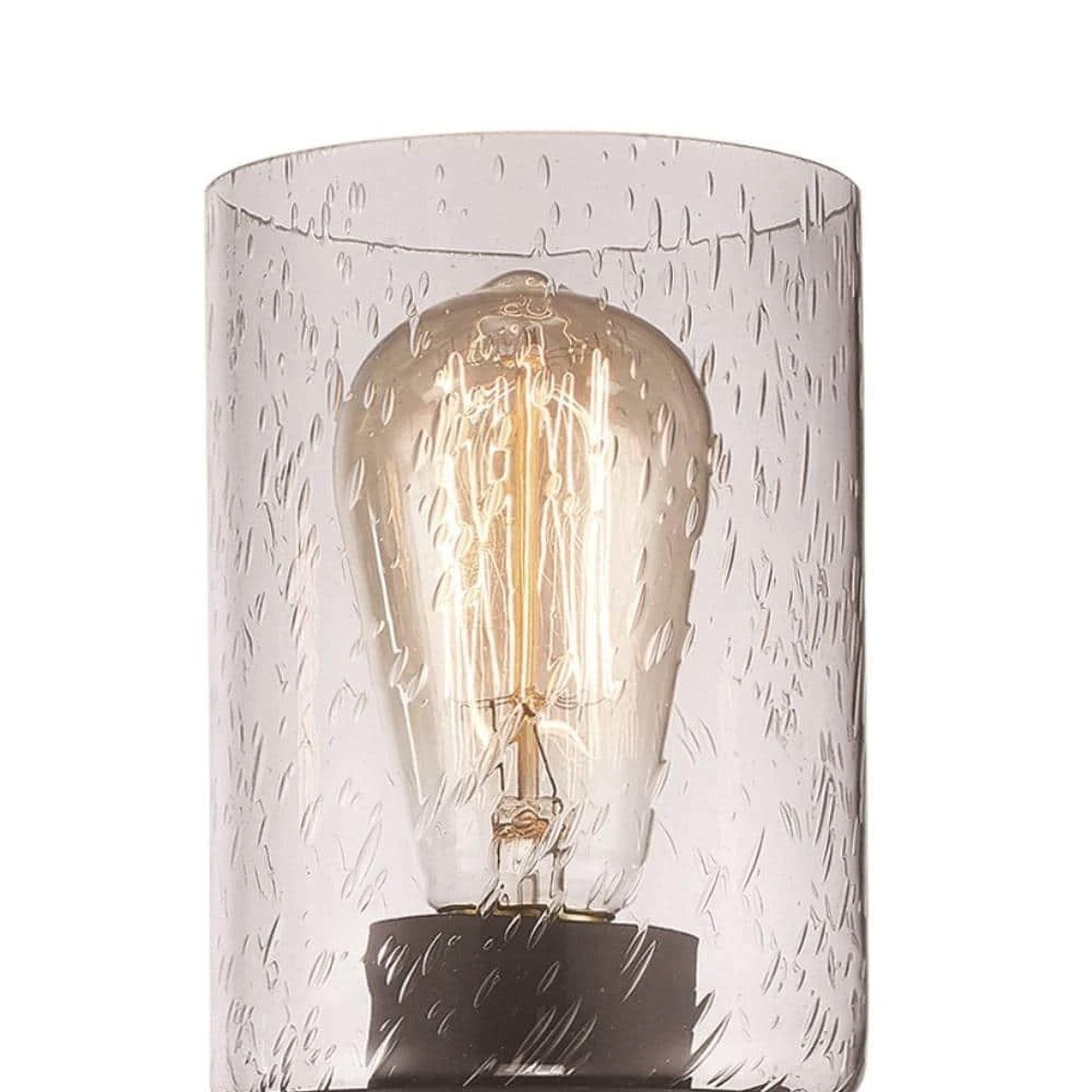 - Clear seeded glass cylinder shades are open at the top for easy bulb access