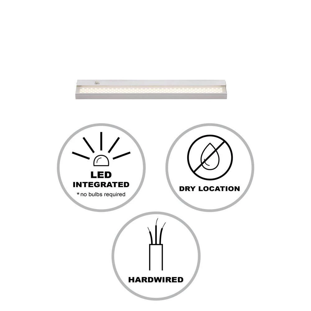 The Signature Collection of under cabinet lighting from Bel Air is designed to provide bright light for kitchen countertops, home offices, studios and other hard-to-see household work surface areas under cabinetry. Each light in the Signature collection features a low-profile design that extends just 1 inch down from the mount. The integrated LEDs are shaded inside a frosted glass lens cover that protects the bulbs and allows for even light distribution on surfaces below. Integrated LED technology is low maintenance as the light bulbs will never need to be replaced for the life of the fixture. The Signature 24 inch LED under cabinet light is finished in white, and is linkable with other cabinet mount lights in the collection for a customized configuration. A high/low switch is included on the unit so you can create the perfect atmosphere for your home with brighter or softer illumination. Install this unit as a hardwired fixture, or plug-in directly to a standard outlet with the included cables and hardware.