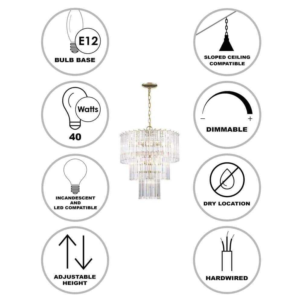 - Uses (9) candelabra base 40-watt bulbs, not included