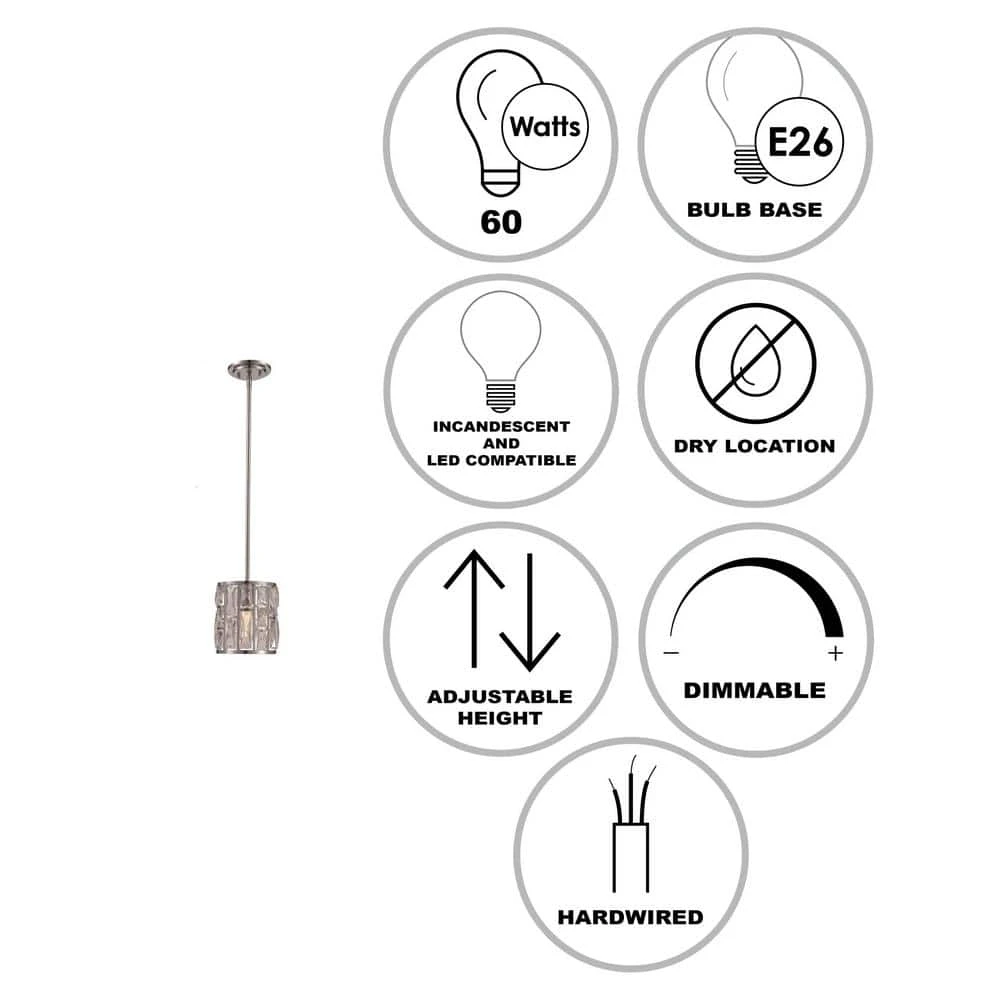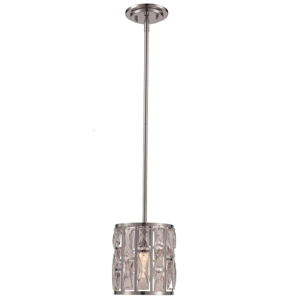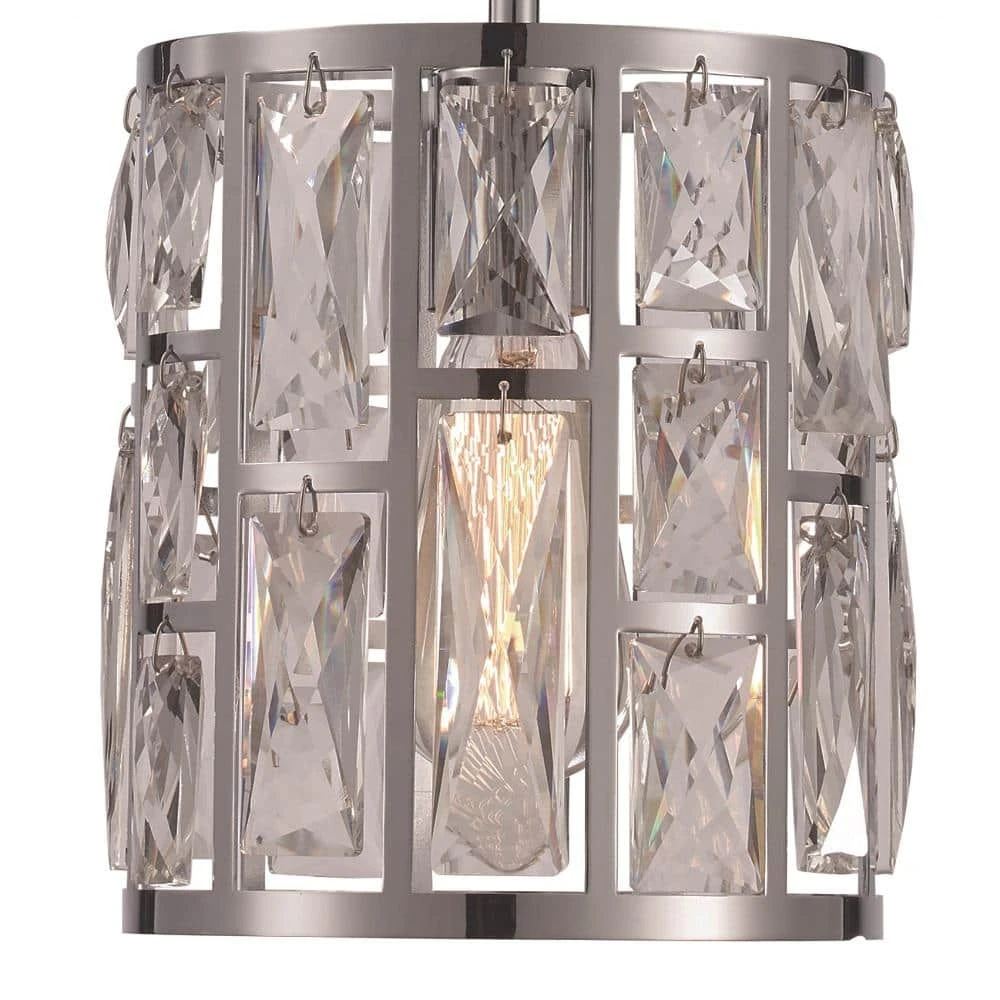 The Vibrant Collection from Bel Air exhibits glamorous, designer-inspired indoor lighting designed to suit a variety of home decor styles from transitional to modern. The Vibrant mini pendant is a decorative hanging light that works well in dining areas, kitchens, and other compact spaces where focused light is needed. Use as a single unit, or install as a set over a linear kitchen island or bar table for additional illumination in larger spaces. The fixture is constructed of polished chrome-finished metal and includes a circular ceiling plate and a cylindrical metal shade with open windows where individual crystal panels hang. The crystals highlight the glamorous tone of the piece and look beautiful when the light inside is turned on or off. The pendant body hangs from extension rods, of which multiple extra rods are included for an adjustable height. Shop the Vibrant Collection for coordinating interior lighting for the whole house.