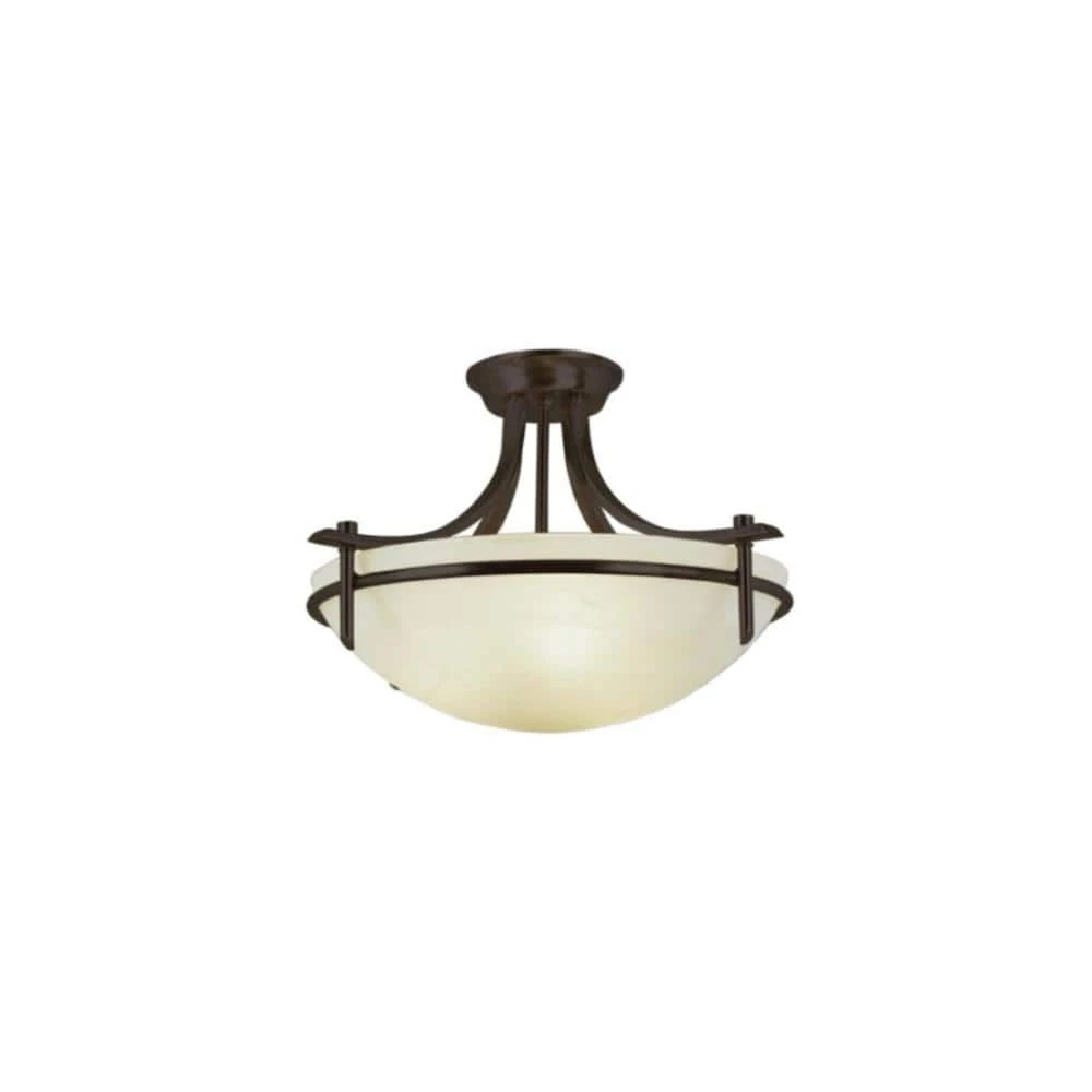 The Vitalian Collection exhibits modern interior lighting with contemporary flair, highlighted by contrasting posh marbleized glass shades with high quality finishes. The Vitalian Collection finds itself at home in a variety of decor styles from transitional to modern, and features pieces suitable for every room of the house. The Vitalian semi-flush mount is finished in a warm, rubbed oil bronze and includes a glass bowl shade held in place by a matching bronze ring and sleek curved support arms. The contrast of frosted white and bronze highlights to contemporary tone of the piece. The glass shade is open at the top for maximum light output and to allow for easy access to change the bulbs. This ceiling light is ideal for adding area lighting to dining rooms, kitchens, and foyer entryways.