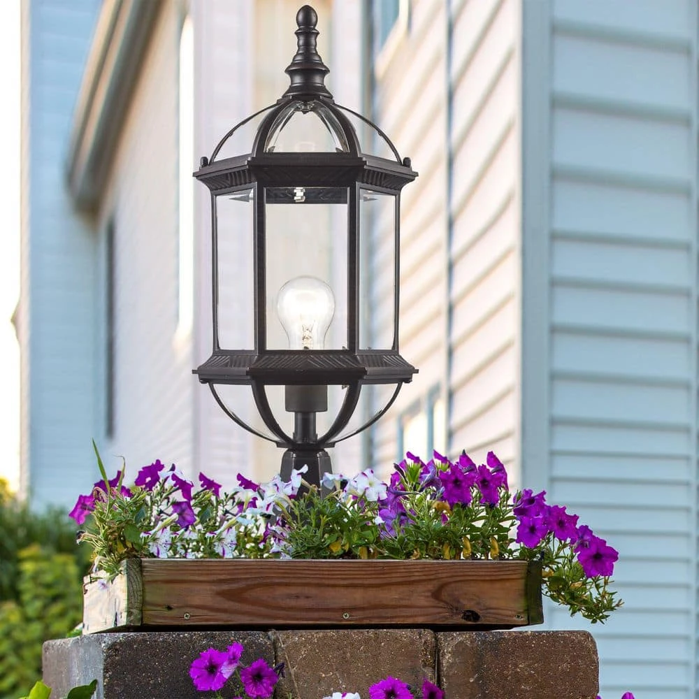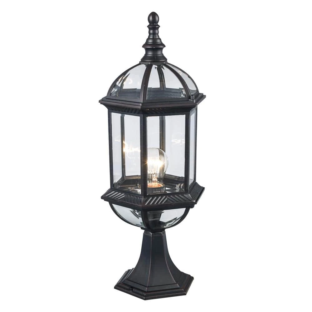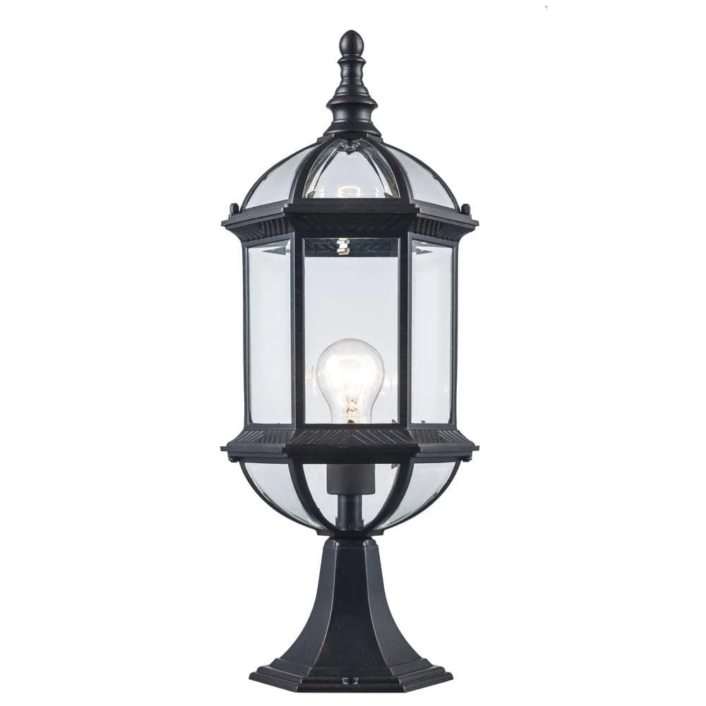 The Wentworth Collection from Bel Air presents craftsman exterior lighting with decorative details such as scroll arms, braided trim, and clear beveled glass. The classic styling is designed to coordinate with a variety of home types, from traditional to rustic. The Wentworth pier base landscape light is designed to mount directly into thick posts, walls, columns, or other flat surfaces in need of illumination. The pier light is finished in rust, a natural finish that will easily blend with existing hardware and exterior lighting. The lantern style housing includes a cast metal frame and clear, beveled glass windows on the six sided frame. A single 60-watt bulb can be seen inside the body, offering ample and uninterrupted illumination to your landscaped areas. Shop the Wentworth family of outdoor lights for additional sizes, finishes, and lighting styles.