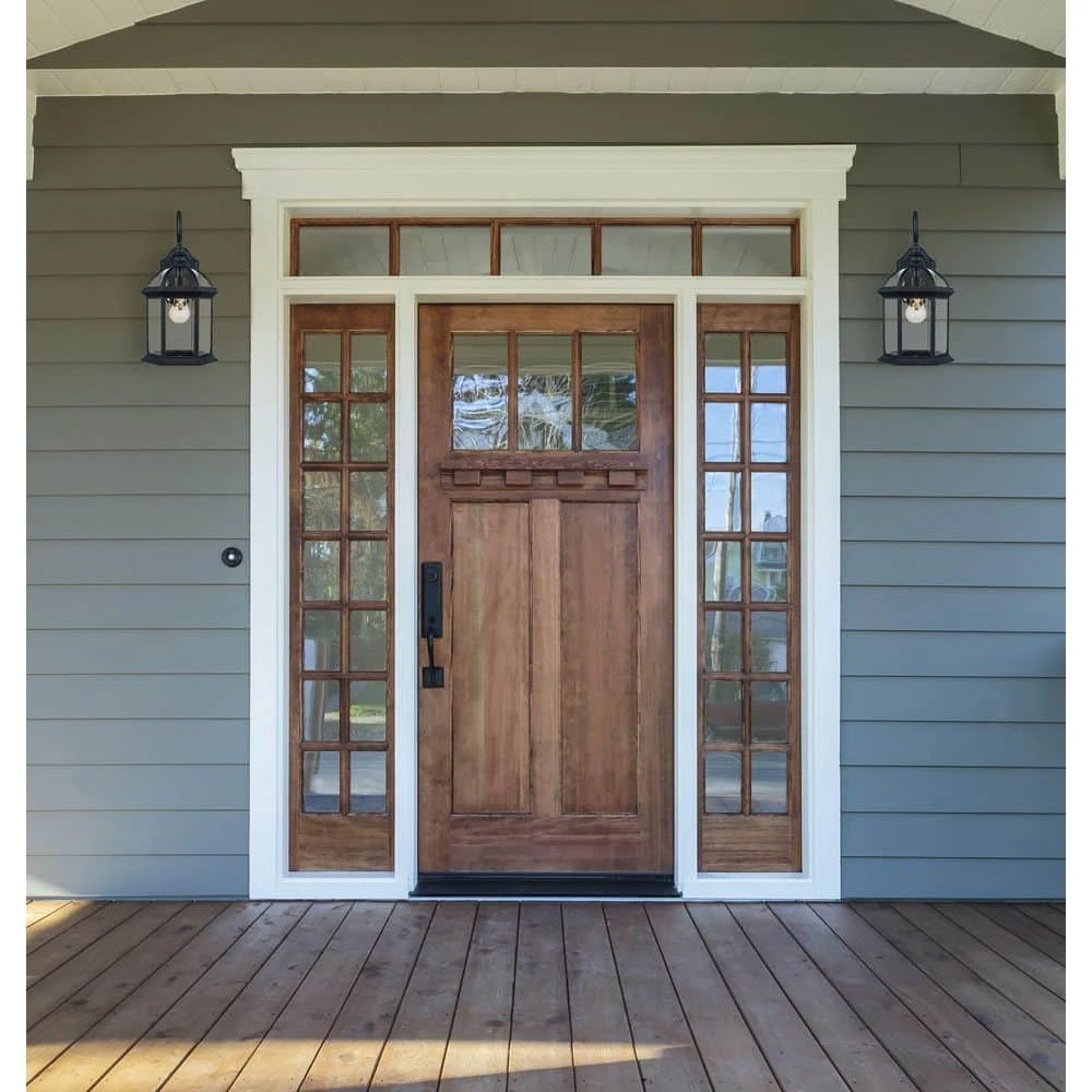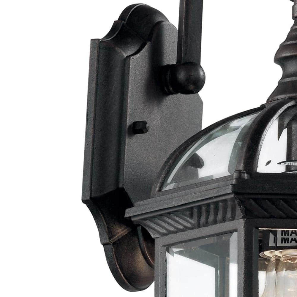 The Wentworth Collection from Bel Air presents craftsman exterior lighting with decorative details such as scroll arms, braided trim, and clear beveled glass. The classic styling is designed to coordinate with a variety of home types, from traditional to rustic. The Wentworth twin pack of outdoor wall lights includes two units, ideal for mounting on either side of a garage door, porch entryway, or exterior corridor. The sconces are finished in black, a smooth finish that will easily blend with existing hardware and exterior lighting. Each piece is 15.75 inches tall, uses a single 60-watt light bulb, and is open at the bottom for directional lighting. The lantern bodies appear to “hang” from a decorative scroll, while remaining firmly affixed to the wall plate to hold up in harsh weather conditions. Shop the Wentworth family of outdoor lights for additional sizes, finishes, and lighting styles.